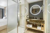 Auf 14 Etagen verteilt, umfasst es 321 elegant gestaltete Zimmer und Suiten, die für alle Arten von Reisenden geeignet sind, von Paaren über Familien bis hin zu Geschäftsreisenden. Jedes Zimmer ist so gestaltet, dass Sie sich entspannen und gleichzeitig bequem arbeiten können - mit Panoramafenstern, Regendusche und modernsten Annehmlichkeiten. Darüber hinaus verfügt das Hotel über 2 barrierefreie Zimmer.